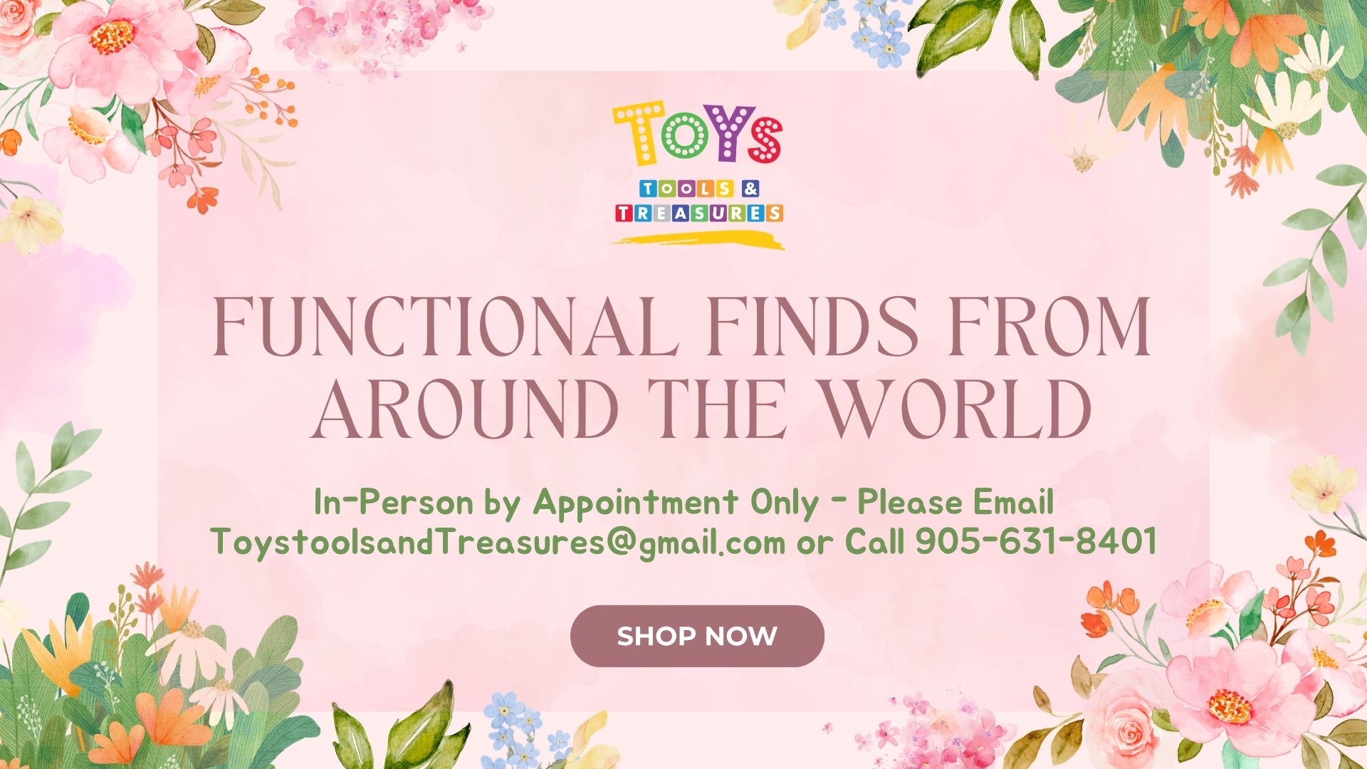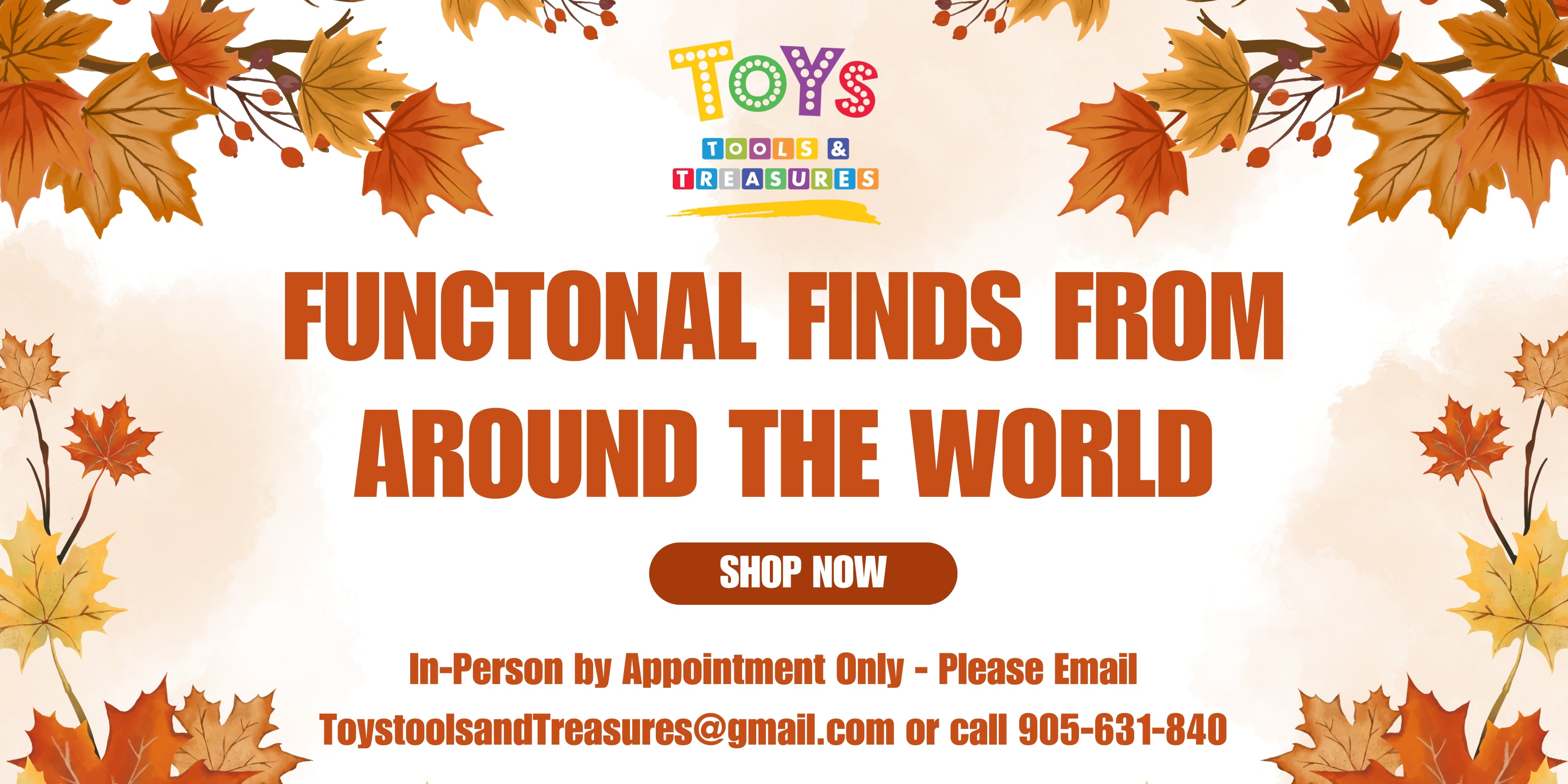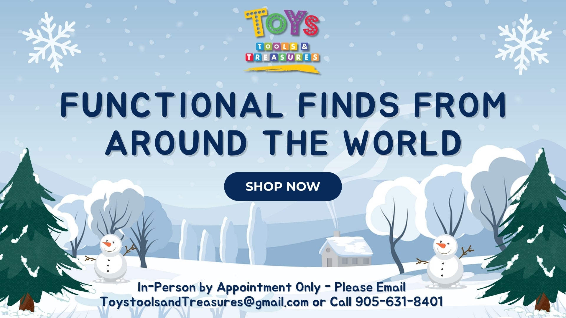 Toys, Tools and Treasures is a home-based business. Please contact us at Toystoolsandtreasures@gmail.com or at (905) 631-8041 to set up an in person appointment! Thank you!