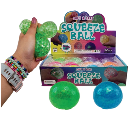 A great stress releaser. Glittery beads rub together to produce an interesting sensation. Assorted colors.